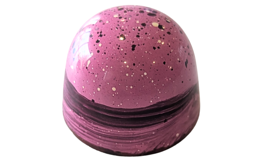 citrusy and tart blood orange dark chocolate caramel with a kick of grand marnier in a 66% dark chocolate shell.
